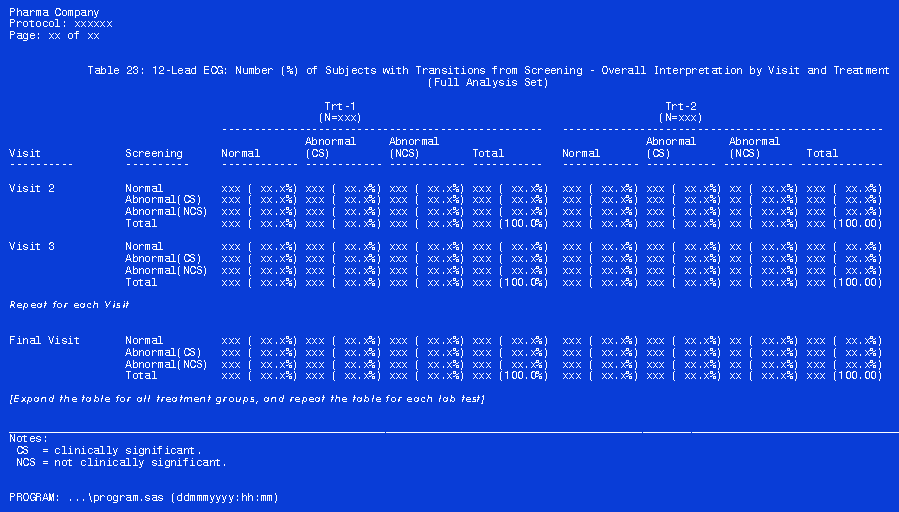 Lead ECG: Number (%) of Subjects with Transitions from Screening – Overall Interpretation by Visit